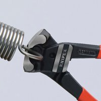 Bolzen-Vornschneider kraftvoll, kompakt, komfortabel. Im Vergleich zu herkömmlichen Hebel-Vornschneidern größere Kapazität bei geringerem Kraftbedarf und besserem Handling. Mit Schneiden für weichen und harten Draht sowie Pianodraht. Besonders hohe Schneidleistung bei geringerem Kraftaufwand durch optimale Übersetzung. Schneiden zusätzlich induktiv gehärtet, Schneidenhärte ca. 64 HRC. Geschmiedet. - Schneidwerte weicher Draht (Durchmesser): Ø 1 - 6mm - Schneidwerte mittelharter Draht (Durchmesser): Ø 4,0mm - Schneidwerte harter Draht (Durchmesser): Ø 3,5mm - Schneidwerte Pianodraht (Durchmesser): Ø 3,0mm