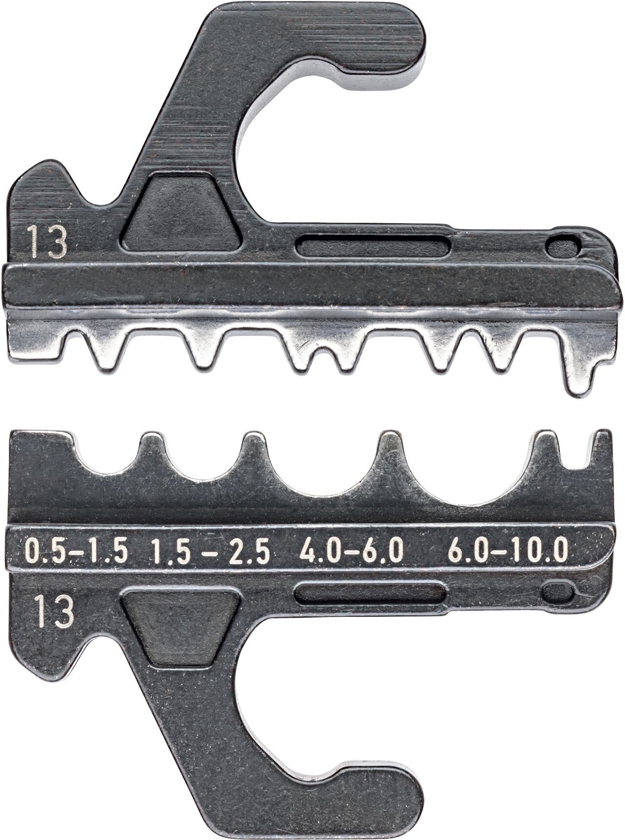 • Crimpeinsatz für unisolierte Quetsch-, Rohr- und Presskabelschuhe nach DIN 46234 und DIN 46235 sowie unisolierte Quetsch-, Stoß- und Pressverbinder nach DIN 46341 und DIN 46267
