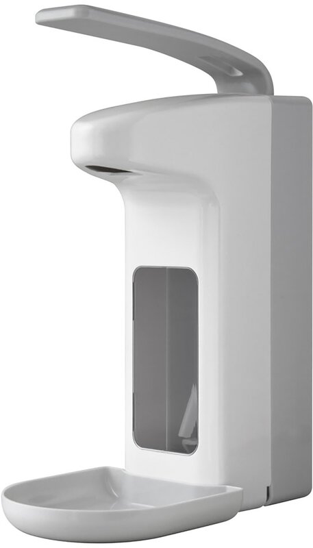 Desinfektionsmittelspender, 500ml, Kunststoff mit Armhebel, für Euroflaschen, weiß/grau