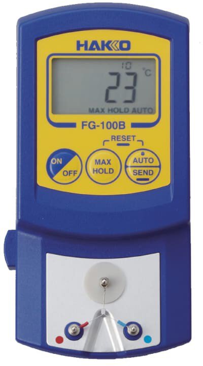 Das Hakko FG-100B Spitzenthermometer kann alles, was das FG-100 kann - und mehr. Die neue AUTO HOLD-Funktion beendet die Messung automatisch, sobald sich die Temperatur der Messspitze stabilisiert hat - so können individuelle Messunterschiede minimiert werden. Das FG100-B kann außerdem sowohl Celsius als auch Fahrenheit anzeigen.