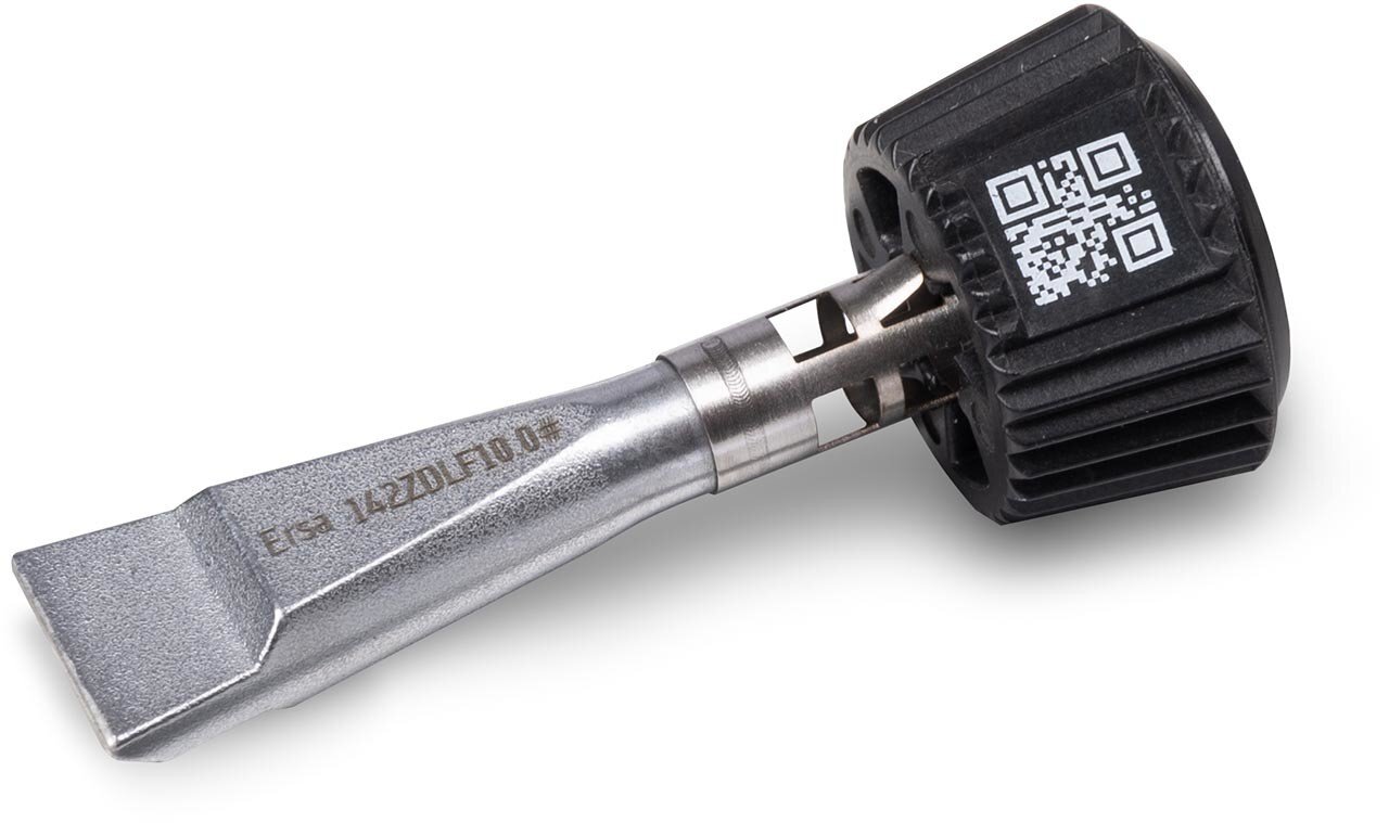 Tip'n'Turn ist das patentierte Konzept für die Vereinigung von Lötspitze und Heizelement. Der Bajonettverschluss ermöglicht einen schnellen Wechsel der Lötspitze selbst im heißen Zustand, entweder mit Hilfe des Ablageständers 0A58 oder von Hand.