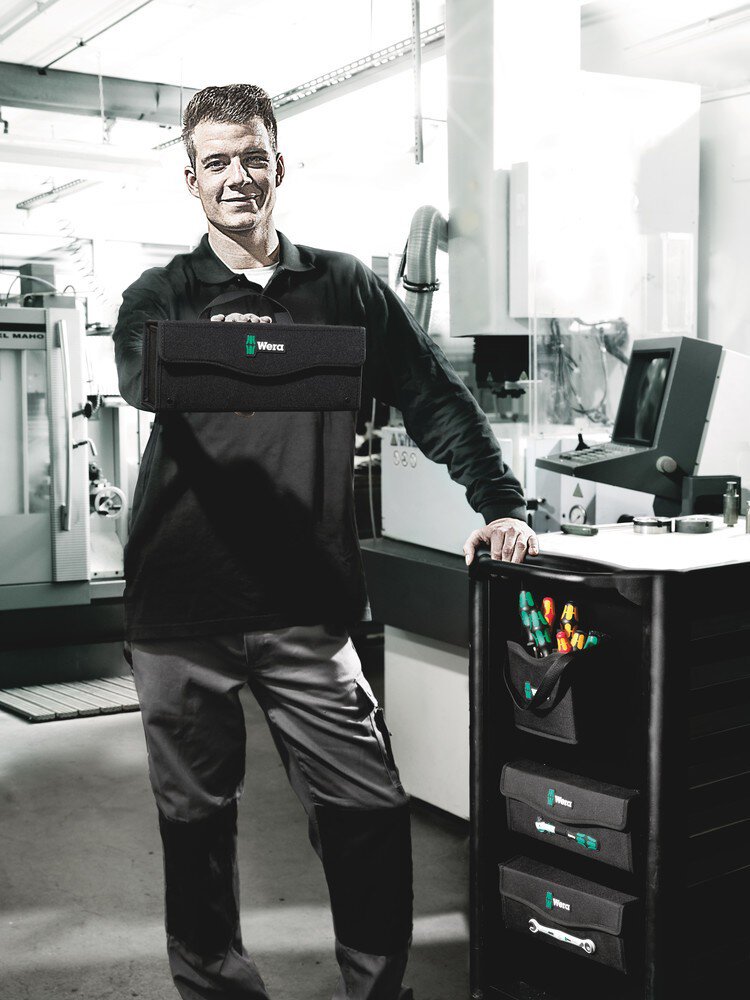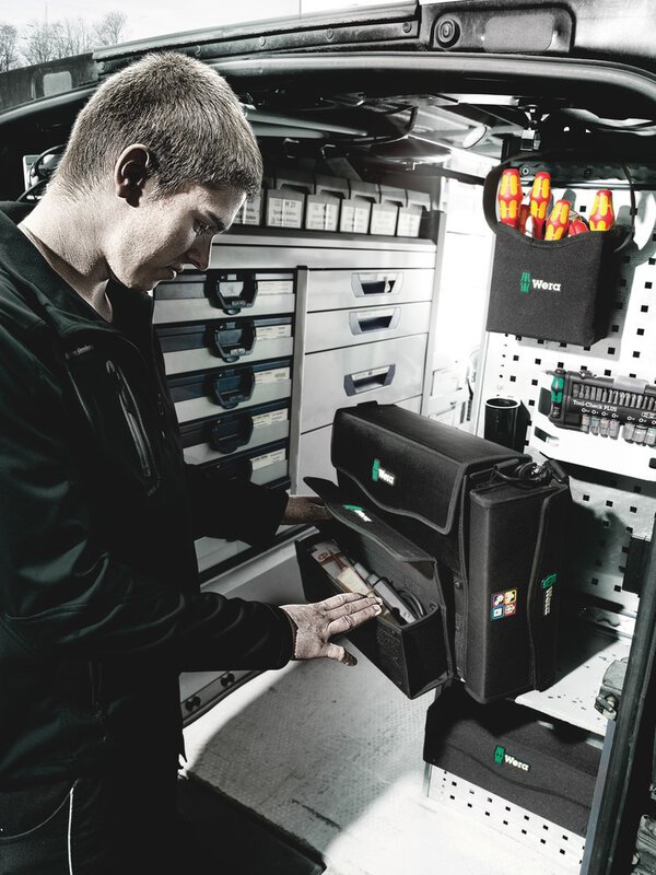Die kompakte Wera 2go Werkzeug-Box kann mit Werkzeug und Ersatzteilen befüllt und an Wera 2go 1, 2 und 5 angedockt werden.