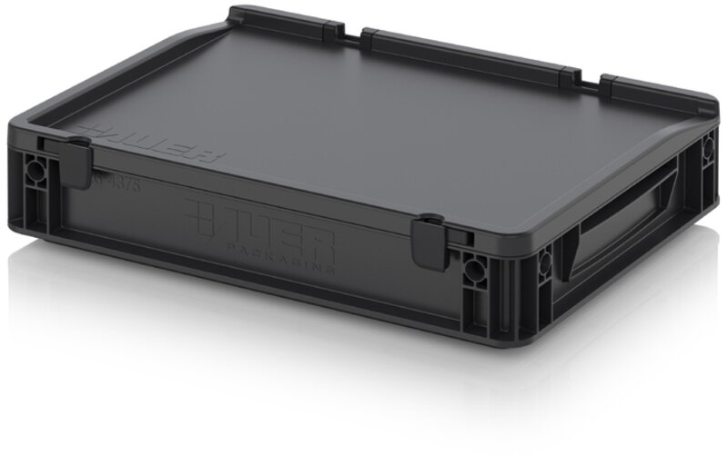ESD Eurobehälter mit Scharnierdeckel, schwarz, 400 x 300 x 90 mm