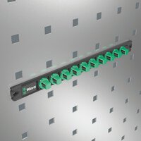 1 Nuss-Magnetleiste, unbestückt. Für bis zu 10 Steckschlüsseleinsätze und/oder Bitnüsse mit 1/2"-Antrieb. Die Magnetleiste ermöglicht die temporäre Anbringung an metallischen Oberflächen und verfügt dank der Twist to unlock Funktion über eine sichere Nussverriegelung und -entriegelung.