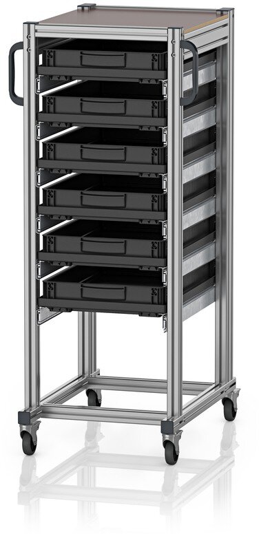 ESD-Systemwagen für Eurobehälter, 60 x 40 cm, Höhe 134 cm, mit 6 mal 64/75 HG