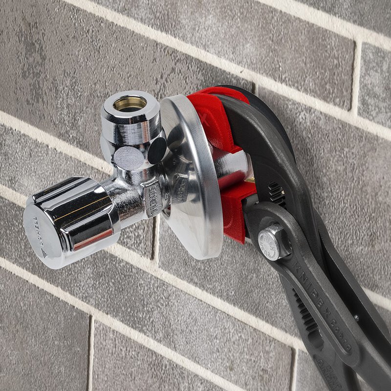 Optimal geeignet für runde Werkstücke an Armaturen und weitere empfindliche Materialien dank weicher Greifflächen. Gesamte Greiffläche/Verzahnung ist bedeckt: verhindert Beschädigungen durch die aggressiven Zähne der Greifbacken. Einfaches Aufstecken per Hand und zuverlässige Fixierung an den Greifbacken mittels innenliegendem Rasthaken. Glatte Schonbackengreifflächen (keine Verzahnung). Set bestehend aus 3 Paar Schonbacken aus Kunststoff.
