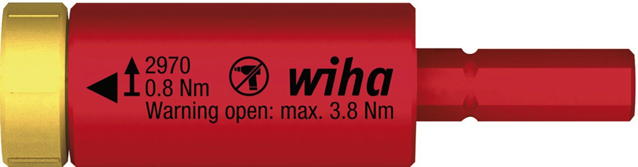 Einen kontrollierten Schraubenanzug und gleichzeitig Sicherheit bei elektrischen Applikationen bietet der easyTorque Adapter. Der Drehmomentadapter gewährleistet eine prozesssichere Anwendung und schützt so vor Materialbeschädigung und Nacharbeit. Weiterhin gewährt der isolierte easyTorque Adapter einen sicheren Halt der 75 mm slimBits und ist zudem kompatibel mit allen slimVario Produkten. Somit verwandelt der handliche Adapter sowohl slimVario-Schraubendreher mit Bithalter und slimVario Stubby electric als auch den Schraubendreher LiftUp electric mit Bit-Magazin im Handumdrehen in ein Drehmomentwerkzeug. Das Erreichen des Drehmoments wird zum einen durch ein Klicksignal hörbar und durch das entgegengesetzte Drehen des gelben Rings und des roten Adapters sichtbar. Der easyTorque Adapter wird gemäß der internationalen Norm IEC 60900 einer Stückprüfung unterzogen und ermöglicht ein sicheres Arbeiten an unter Spannung stehenden Teilen bis 1.000 V AC.