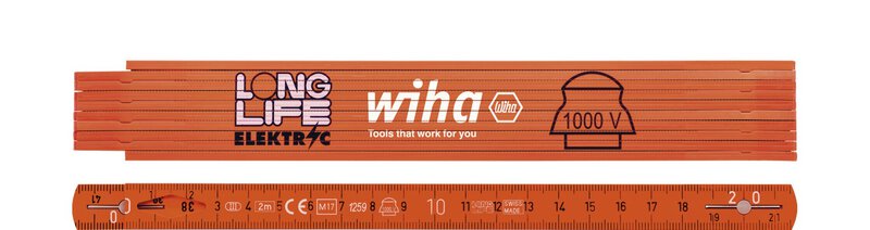 Für die Installation einer Unterputzdose und das Durchziehen von Kabeln braucht der Elektriker mehrere Werkzeuge mit unterschiedlichen Funktionen zur Hand, um seine Arbeit schnell und effizient verrichten zu können. Mit dem universell einsetzbaren Elektriker Gliedermaßstab Longlife® können gleich mehrere Arbeitsschritte abgedeckt werden. Der Meterstab überzeugt durch seine integrierte Haltefunktion für Kabel im Bereich von 3 bis 7 mm, welche die Kabelführung in schwer zugänglichen Installationsumgebungen erleichtert. Einen weiteren Vorteil bei der Elektroinstallation bietet die Dosenabstandsskala für bis zu 3 Unterputzdosen und Randabstandsmarkierung bei 150 mm. Aufgrund seiner orangenen Farbe ist der Meterstab auf der Baustelle schnell und einfach auffindbar, sodass kein Zeitverlust aufgrund der Suche nach verlorenen Werkzeugen entsteht oder verlorene Werkzeuge ersetzt werden müssen. Weiterhin ist er mithilfe der Wiha Taschenlampe mit UV-Licht auch bei schlechten Lichtverhältnissen gut zu finden. Der biegefeste Meterstab überzeugt zudem durch höchste Langlebigkeit und absolute Präzision.