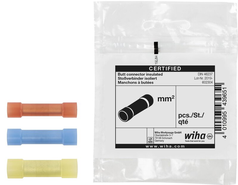Bei der Verbindung elektrischer Leiter ist eine sichere Verbindung unerlässlich. In Kombination mit den automatischen Crimpwerkzeug und den Verbindern von Wiha kann eine gasdichte Verbindung hergestellt und somit eine langfriste Kontaktsicherheit gewährleistet werden. Der konische Kragen erleichtert während der Installation das Einführen der Litze in die Hülse. Die halogenfreien Verbinder von Wiha haben eine Wärmebeständigkeit von bis zu 105° C. Sie werden gemäß der Maßangaben der DIN 46341 gefertigt.