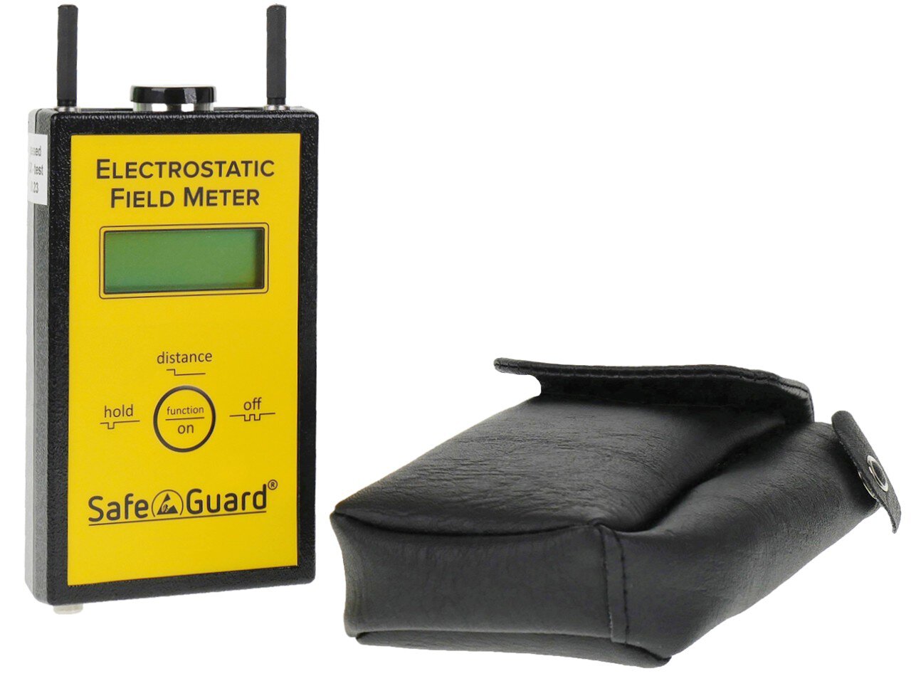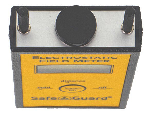 Das Elektrofeldmeter von SafeGuard garantiert durch hochwertige Bauteile und das leitfähige Kunststoffgehäuse präzise Messungen für optimalen Schutz vor elektrostatischer Entladung (ESD). Am oberen Ende des Geräts befindet sich eine sternförmige Influenzelektrode, in geringem Abstand vor dieser rotiert ein an Masse liegendes Modulationsflügelrad gleicher Sternform. Die Influenzelektrode wird von einem Ringelektrodensystem umschlossen, das als mechanischer Schutz für das Modulationsflügelrad und die Feldplatte dient. Die Anzeige auf der Frontseite erfolgt über ein 2x12-stelliges alphanumerisches LCD-Display. Das besitzt zudem einen analogen Ausgang ± 1V. Dieser wird in den manuellen E-Feldmeter Bereichen zugeschaltet.