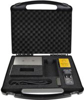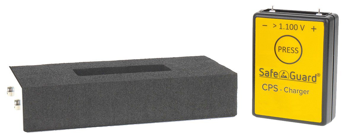 Mit dem Charge-Plate-Set CPS wird aus dem ein Charge-Plate-Monitor zur Überwachung von Luftionisationsgeräten nach DIN EN 61340-5-1 bzw. EOS/ESD S.3.1. Die Kapazität der Ladeelektrode (20pF) entspricht den oben genannten Normen, nicht jedoch ihre Abmessungen (75mm x 150mm statt 150mm x 150mm). Mit dem CPS können problemlos reproduzierbare Messungen vorgenommen werden, normgerechte Messungen sind mit dem größeren Charge Plate Monitor CPM möglich. Das Gerät misst die Entladezeit von +1.000V .. +100V oder -1.000V .. -100V mit einem integrierten Start-Stop-Timer. Die Aufladung erfolgt über einen externen HV-Konverter. Bitte beachten: Im CPS-Mode werden nur Spannungen bis max. 2kV angezeigt!