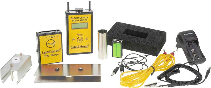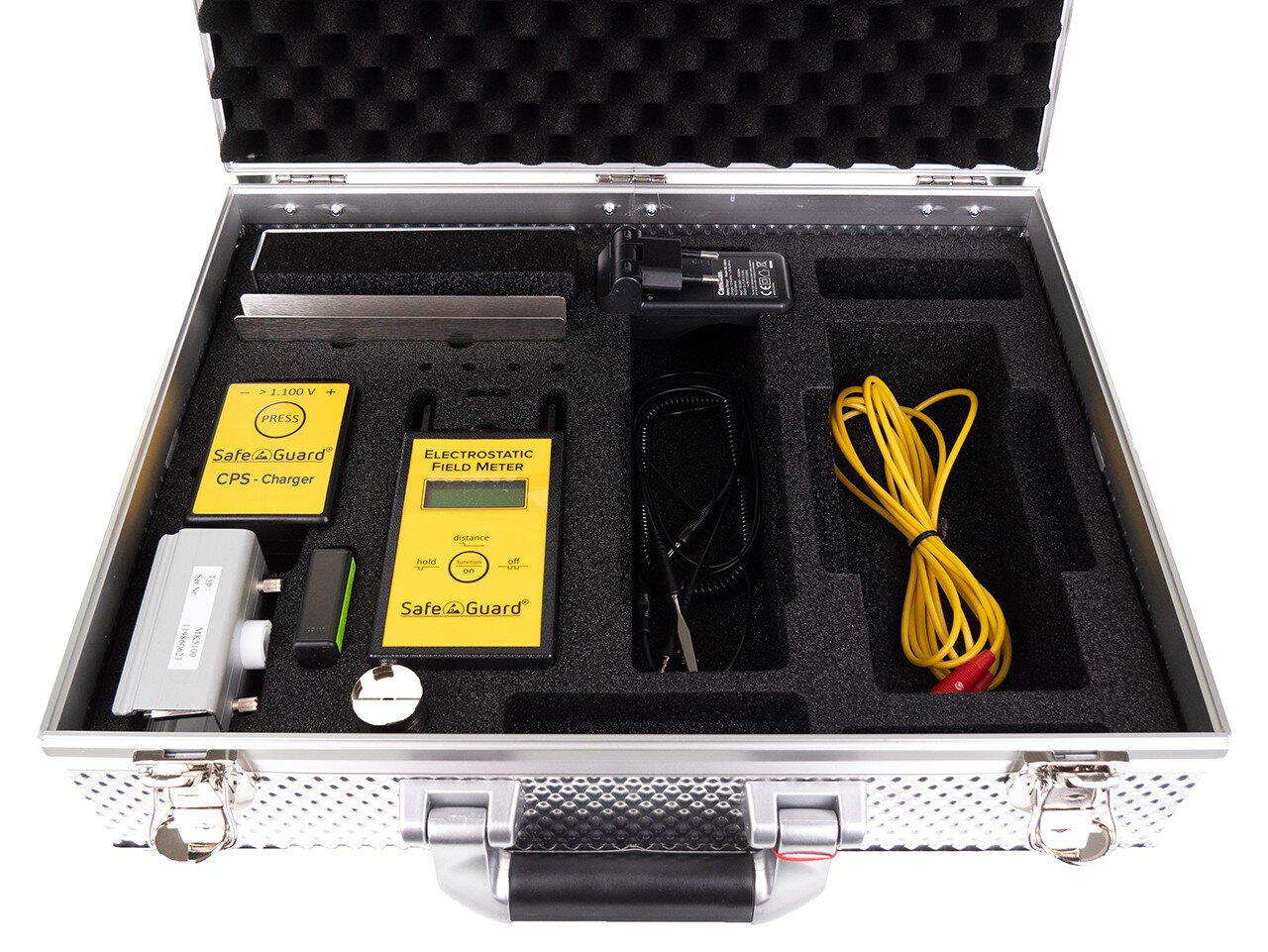 | Lieferumfang | • Elektrofeldmeter (EFM) von SafeGuard • Stabiler Alu-Koffer mit Schaumstoffeinlage • CPS-Set (Platten, HV-Konverter, Standfuß) • WT-Set (Spannungsmesskopf, Handsonde, Kabel) • 2x 9V NiMH - Akku • Steckerladegerät für 9V-Akku • Abgreifklemme • Spiralkabel • Bedienungsanleitung |