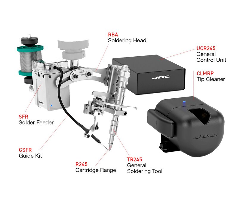 - Fernsteuerung der UCR-Steuereinheit durch den Roboter (PC oder SPS) über das RS232 JBC Kommunikationsprotokoll. Laden Sie es hier herunter.