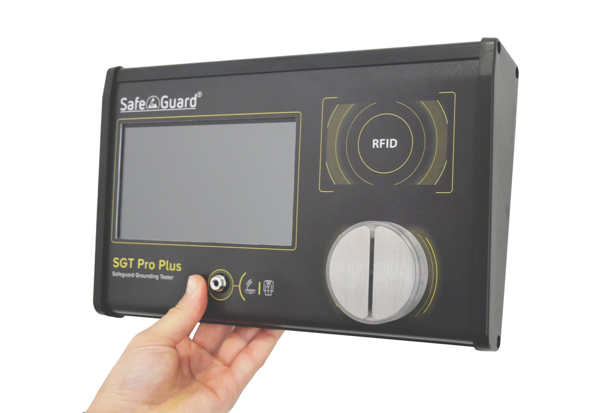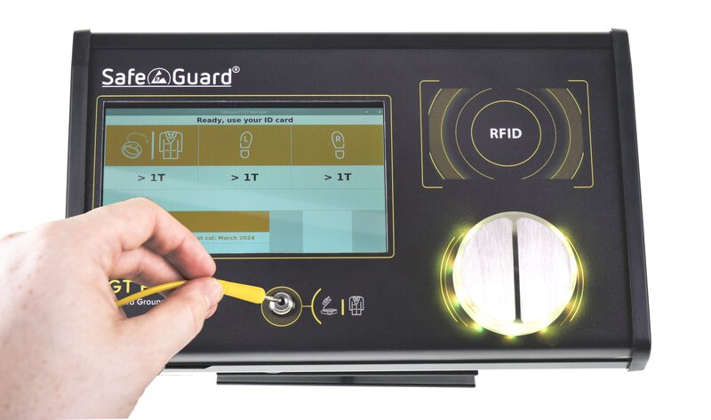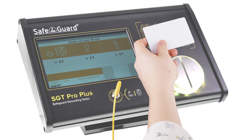 Das SafeGuard SGT Pro Plus ist ein einfach zu bedienendes Testgerät zur Überprüfung der persönlichen Erdung vor dem Betreten eines ESD-geschützten Bereichs (EPA). Durch seine robuste Bauart eignet sich das Gerät, wenn Geschwindigkeit und Sicherheit aufgrund der großen Anzahl von Eingängen wichtige Faktoren sind. Das Prüfgerät ist mit dem LIGHT BAR-System ausgestattet. SafeGuard Produkte aus der COMFORT Serie verfügen über einen Berührungstaster aus Metall sowie ein RFID Lesegerät. Über die benötigte RFID Karte wird direkt der richtige Prüfmodi abgerufen. Folgende Prüfmodi sind möglich:
