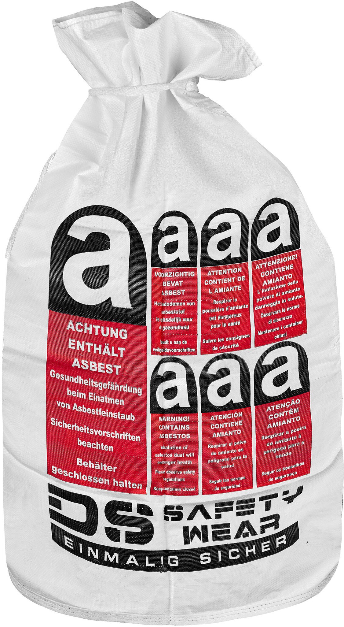 PP-Flachsack 70x110cm, unbeschichtet, mit PE-Liner (lose gelegt) Asbest Warndruck, Verschlussband