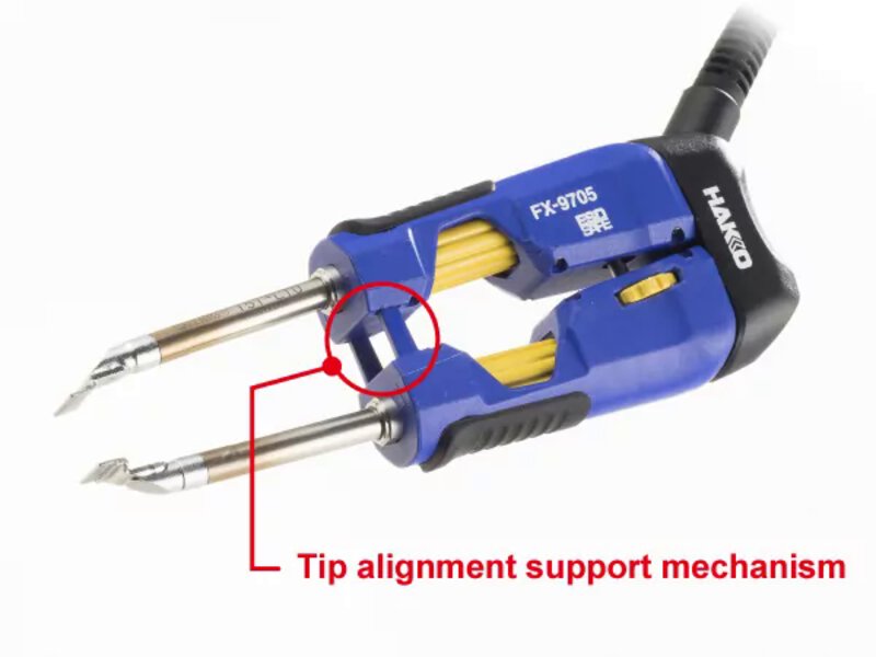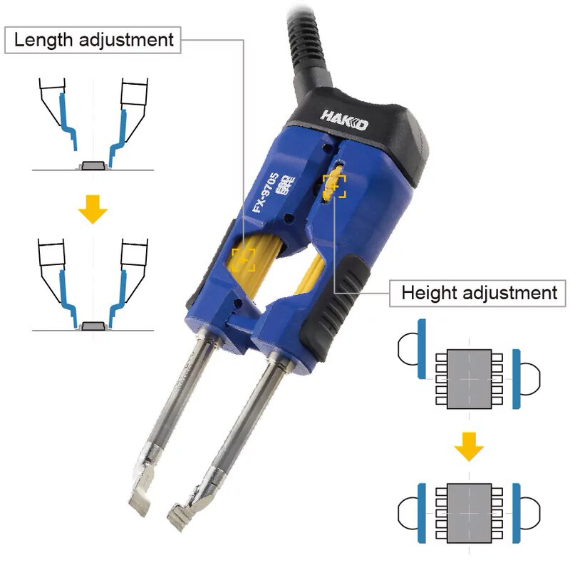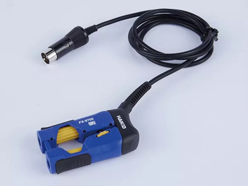 Die FX 9705 Lötpinzette hat eine Leistung von 190 W und eine Kabellänge von 1,2 Metern. Durch die Ergonomie und dem geringen Gewicht von nur 55 g ist die Lötpinzette ideal für ein stressfreies Arbeiten. Das Handstück verfügt über einen Mechanismus mit dem die Höhe und Länge angepasst werden kann, sowie einen Mechanismus für die Unterstützung der Spitzenausrichtung. Somit passt sich das Griffdesign ergonomisch der Hand an und sorgt für Stabilität.