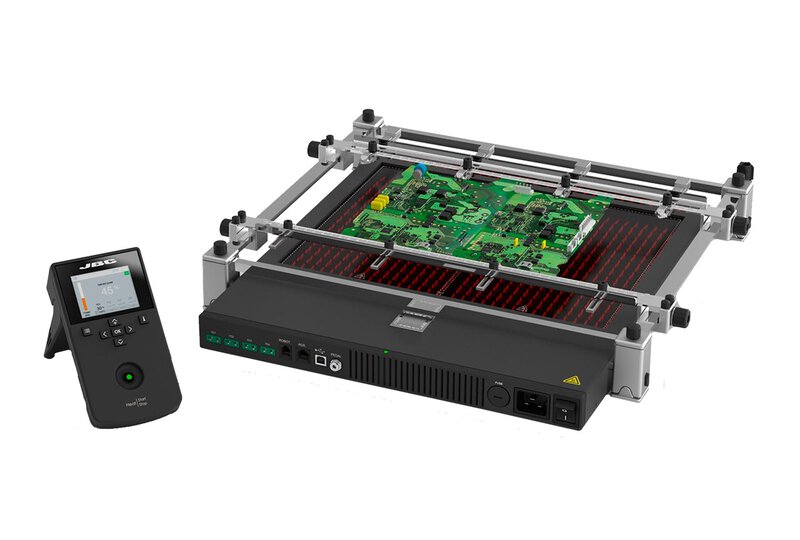 Die Kombination aus Vorwärmer und Leiterplattenträger ist eine Komplettlösung für die Nachbearbeitung mittelgroßer/großer PCBAs, wie sie häufig in Laptops oder PCB-Panels verwendet werden. Es verfügt über eine Heizfläche von 360 x 277 mm und vier TC-Anschlüsse.