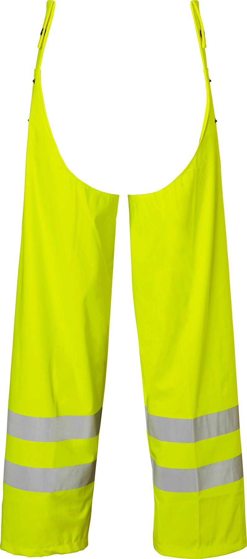 Hosenbeine aus Polyurethan-beschichtetem Stretch-Gewebe mit verstellbaren Knöpfen an den Füßen, in der Länge verstellbar. EN ISO 20471 Klasse 2, EN 343 3/1.