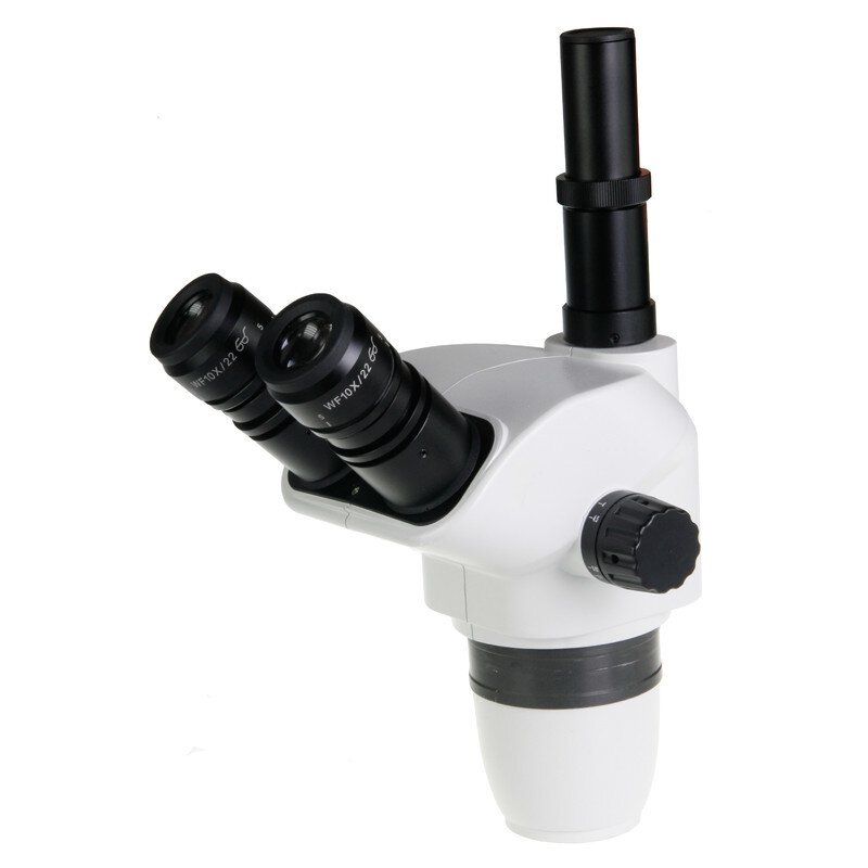 Der NexiusZoom trinokulare Stereokopf NZ.5303-B bietet eine Vergrößerung von 0,67x bis 4,5x und einen Arbeitsabstand von 110 mm. Mit 45° Schräginblick und dioptrienverstellbaren WF 10x/22 Okularen sorgt er für angenehmes Arbeiten. Ideal für Anwendungen in Elektronik, Feinmechanik und Qualitätskontrolle.