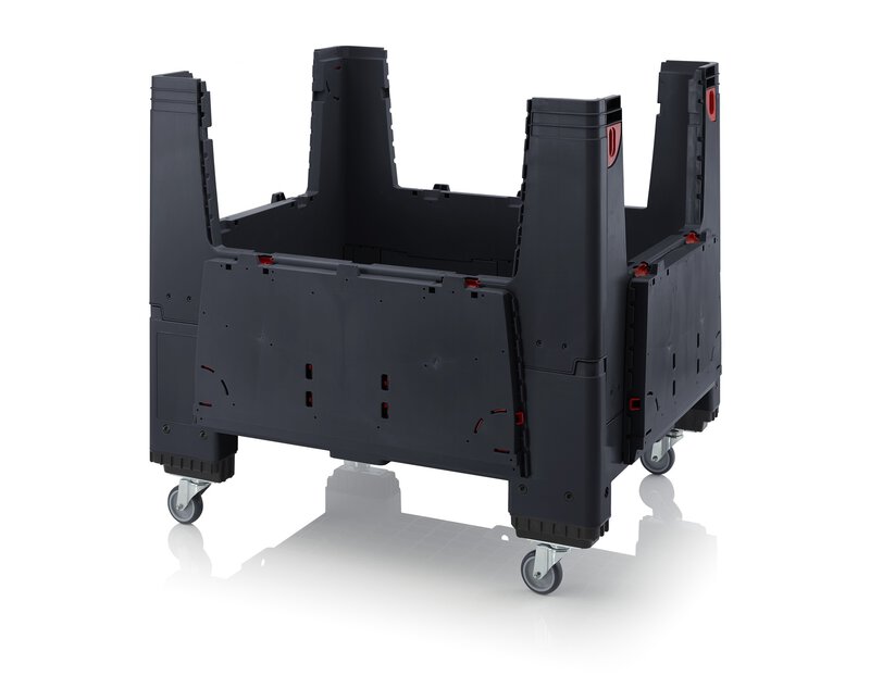 Antistatisch im Großformat. Ergonomie und komfortables Handling bietet die klappbare Big Box mit 4 Eingriffsklappen von AUER Packaging: Vier an den Seitenwänden integrierte Klappen ermöglichen einen schnellen und bequemen Zugriff auf den Inhalt. Bei Nichtgebrauch oder Rücktransport lassen sich die Außenwände platzsparend nach innen klappen.