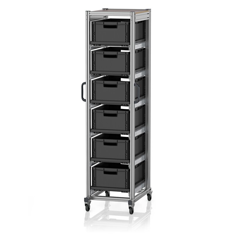 ESD-Systemwagen für Eurobehälter, 60 x 40 cm, Höhe 200 cm, mit 6 mal 64/22 HG