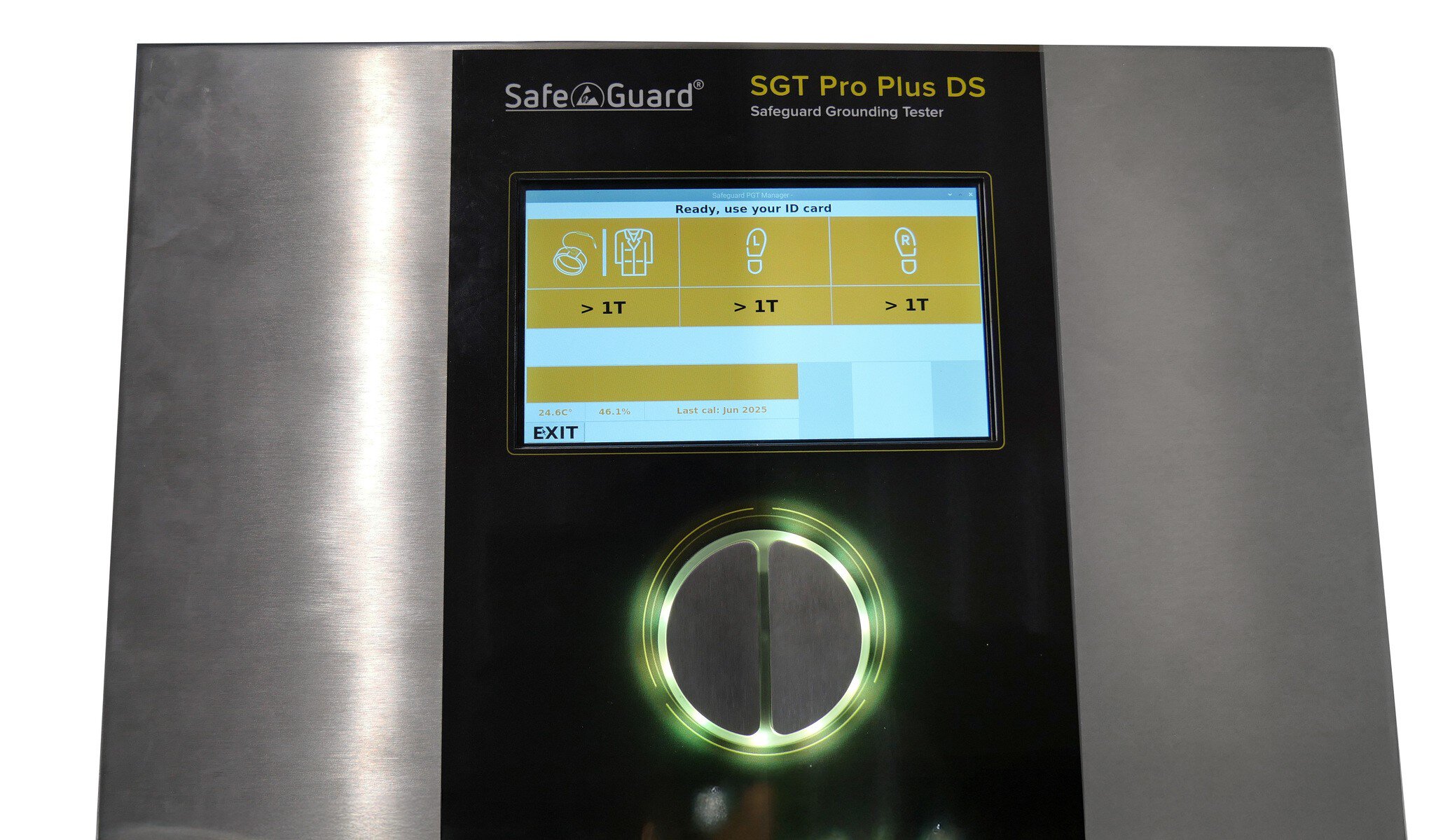Das SafeGuard Pro Plus DS ist ein modernes Erdungsprüfgerät mit integrierter 3-Arm-Drehsperre zur Zugangskontrolle in ESD-geschützten Bereichen. Es ermöglicht die gleichzeitige Prüfung von Schuhen, ESD-Handgelenkbändern und Schutzkleidung. Die Ergebnisse werden übersichtlich auf einem LCD-Display dargestellt und automatisch gespeichert. Dank RFID-Technologie, doppelter Fußelektrode und akustisch-visueller Anzeige ist eine effiziente und sichere Zugangskontrolle gewährleistet. Im Falle eines Stromausfalls senkt sich das Drehkreuz automatisch zur Freigabe des Durchgangs. Die mitgelieferte Software ermöglicht eine flexible Auswertung und Verwaltung der Prüfdaten. Optional ist eine erweiterte Management-Software erhältlich.