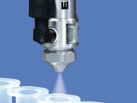 Die Flüssigkeit kann zuverlässig in Mikroliter- bis Millilitermengen, in runden Mustern mit Durchmessern von 4,3 mm (0,17") bis 50,8 mm (2,0") und in Fächermustern mit einer Breite von bis zu 165,1 mm (6,5") dosiert werden.