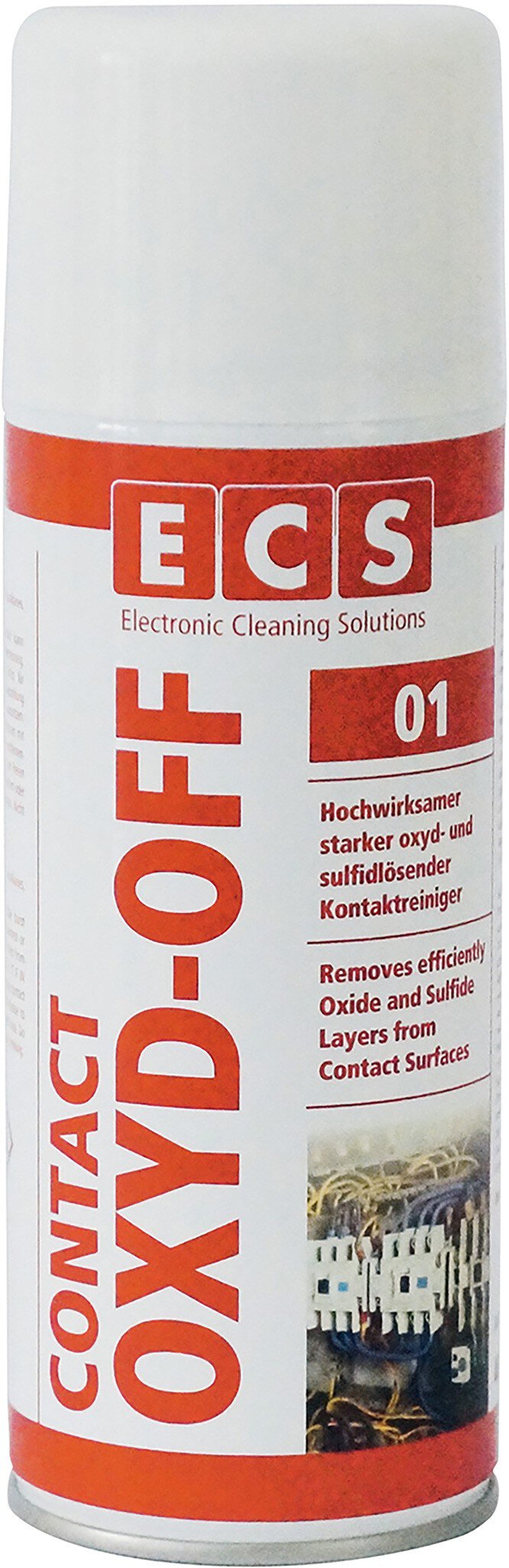 Der ECS Kontaktreiniger Oxyd-Off, 400ml, ist ein hochwirksamer Reiniger, der Oxid- und Sulfidschichten von metallischen Kontaktflächen entfernt. Dank speziell ausgesuchter Inhaltsstoffe bietet er langanhaltenden Gleit- und Korrosionsschutz. Durch die Verwendung dieses Reinigers werden Fehler durch Übergangswiderstände verhindert und abgebaut, Spannungsverluste entfallen. Die Funktionsfähigkeit aller elektromagnetischen Kontakte bleibt langfristig erhalten. Die Anwendung erfolgt einfach über die Spraydose. Inhalt: 400 ml.