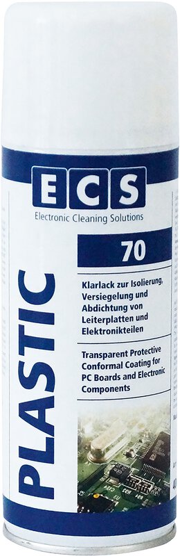 Der ECS Klarlack Plastic in der 400ml Spraydose ist ein schnelltrocknender, farbloser Acryllack mit ausgezeichneten isolierenden Eigenschaften. Er eignet sich ideal zur Isolierung, Versiegelung und Abdichtung von Leiterplatten und schützt vor Feuchtigkeit sowie anorganischen, sauren und alkalischen Dämpfen. Dank seiner hervorragenden Haftung ist er im Temperaturbereich von -70° C bis +100° C einsetzbar und kurzzeitig sogar bis zu 120° C. Der Lack ermöglicht die Reparatur von Leiterplatten und garantiert einen dauerhaften Schutz. Er kann auf Metall, Kunststoff, Holz, Pappe und Glas verwendet werden, tropft nicht und enthält einen UV-Indikator zur Qualitätskontrolle. Das Produkt entspricht dem Standard MIL-I-460580 "Type Acrylic Resin" und ist vielseitig einsetzbar für Metall, Papier, Schilder uvm.