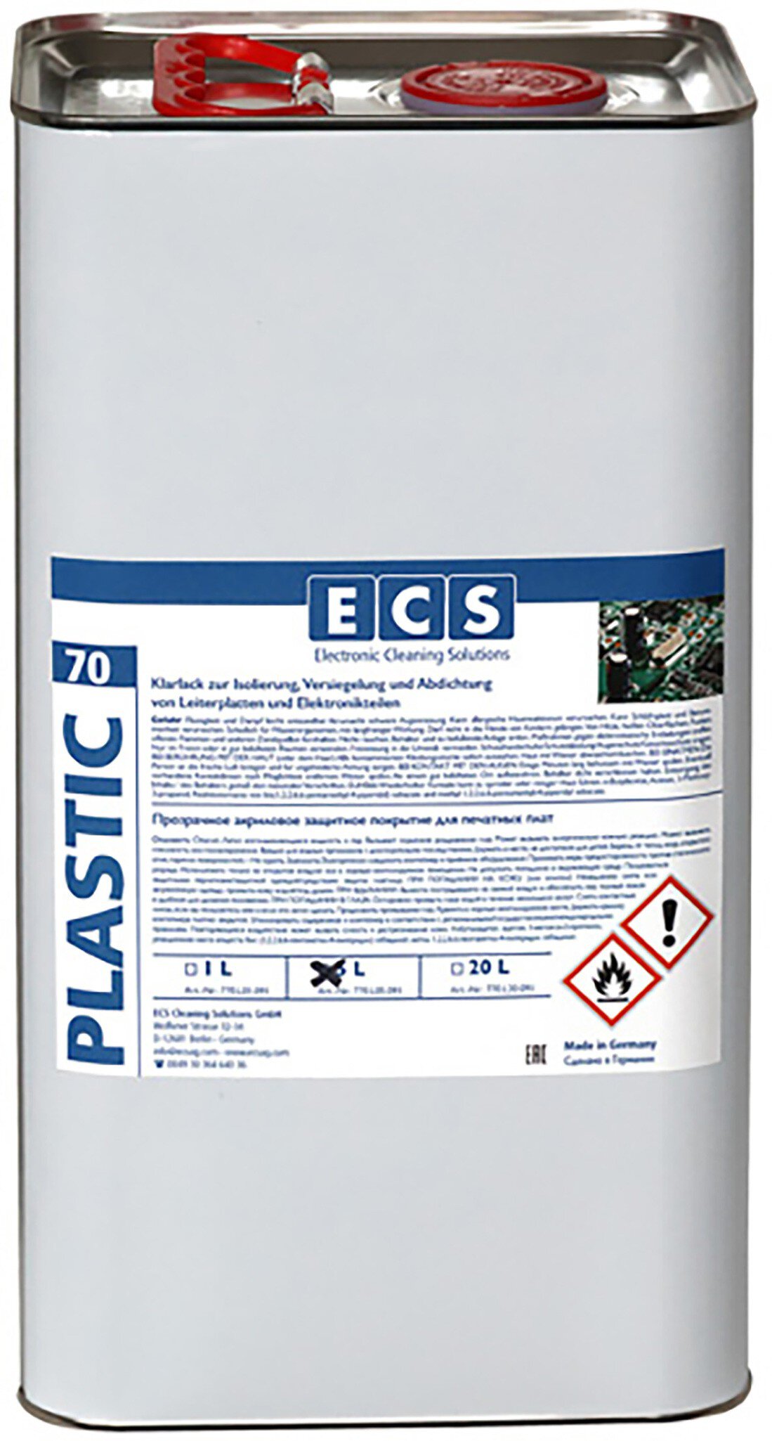• PLASTIC ist ein schnelltrocknender, farbloser, transparenter Acryllack und geeignet als Korrosionsschutzlack für Leiterplatten