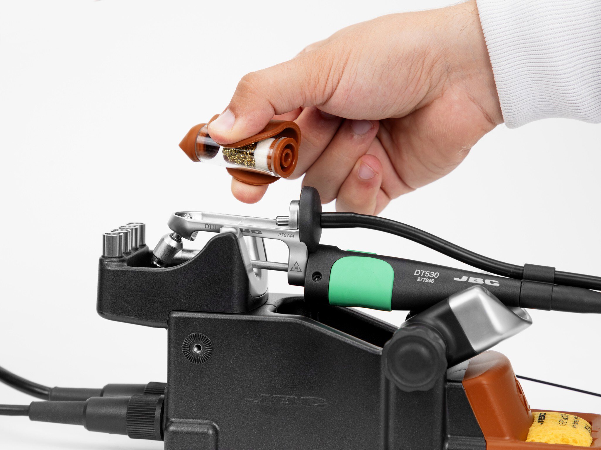 DT530 arbeitet mit DDE- oder DME-Steuergeräten und dem neuen MSE-Elektrolötmodul, das alle Vorteile des JBC Most Efficient Soldering System bietet.