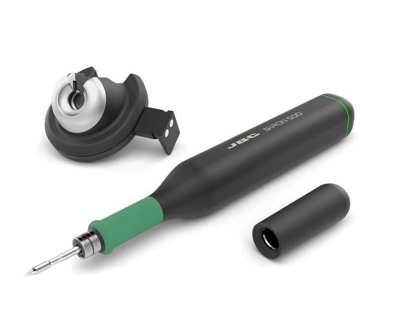 • Der B-500 Handgriff ist ideal für kontinuierliche und intensive Arbeiten mit größeren Bauteilen. Er schafft bis zu 500 SMD-Lötstellen pro Ladung.