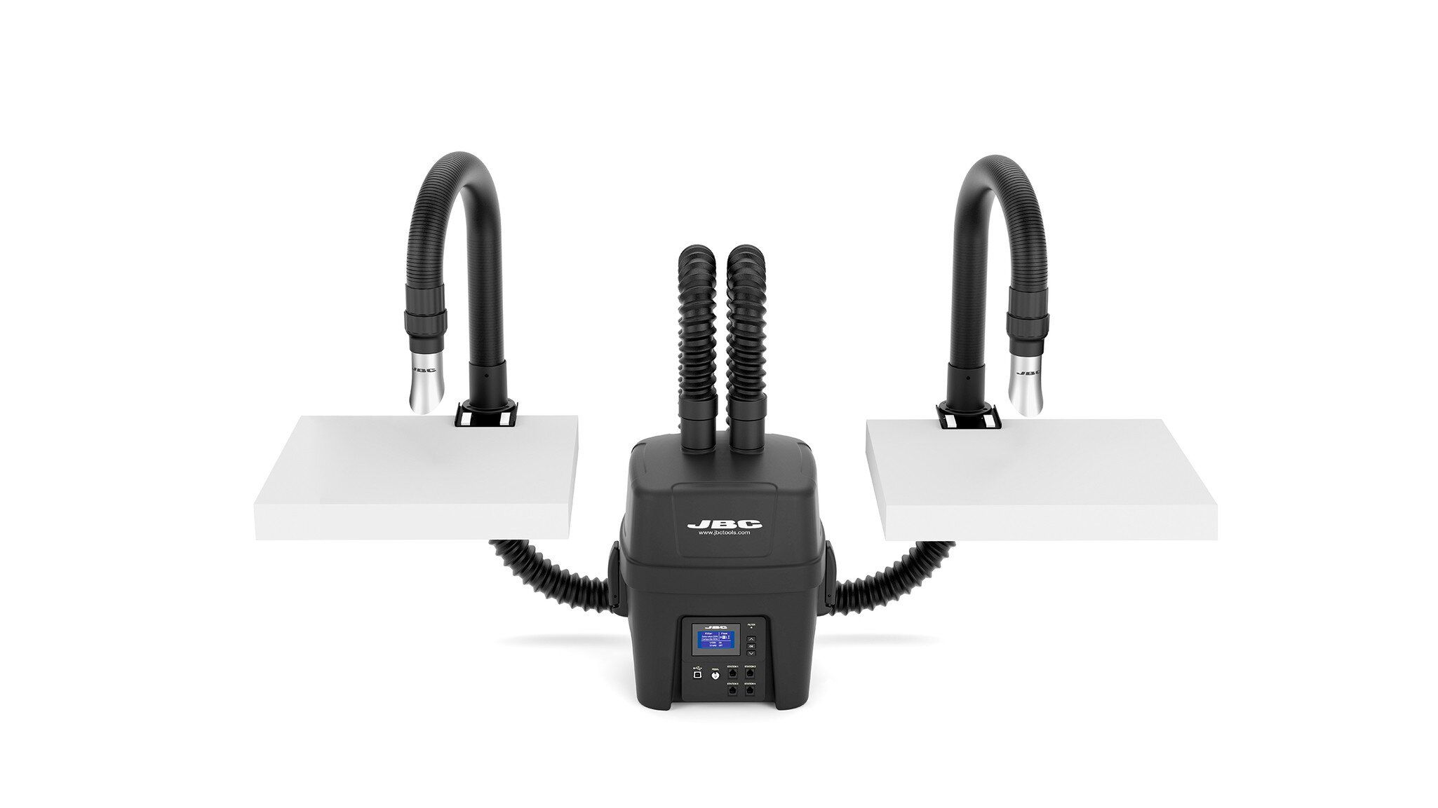 Jeder Arm bietet eine Absaugung von 80 m³/h und optimiert so die Rauchabsaugung für zwei Werkbänke . Es übertrifft Industriestandards und gewährleistet eine höhere Luftqualität und Konformität.