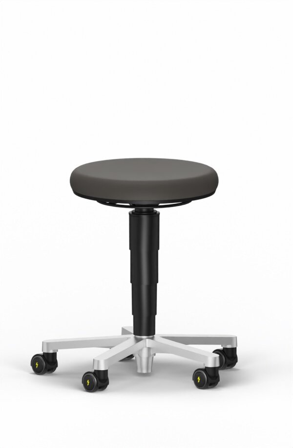 Unkontrollierte elektrostatische Entladungen gehören zu den größten Gefahren für empfindliche Bauteile. Die ESD-Varianten des Hockersystems sorgen für eine sichere Entladung, bevor sich übermäßige Spannungen aufbauen können. Hierfür sind sämtliche Komponenten des Hockers leitfähig ausgelegt – vom Polster bis hin zur Rolle. ESD-Hocker von Bimos sind die ideale Lösung für kurzzeitiges Sitzen in ESD-Bereichen.