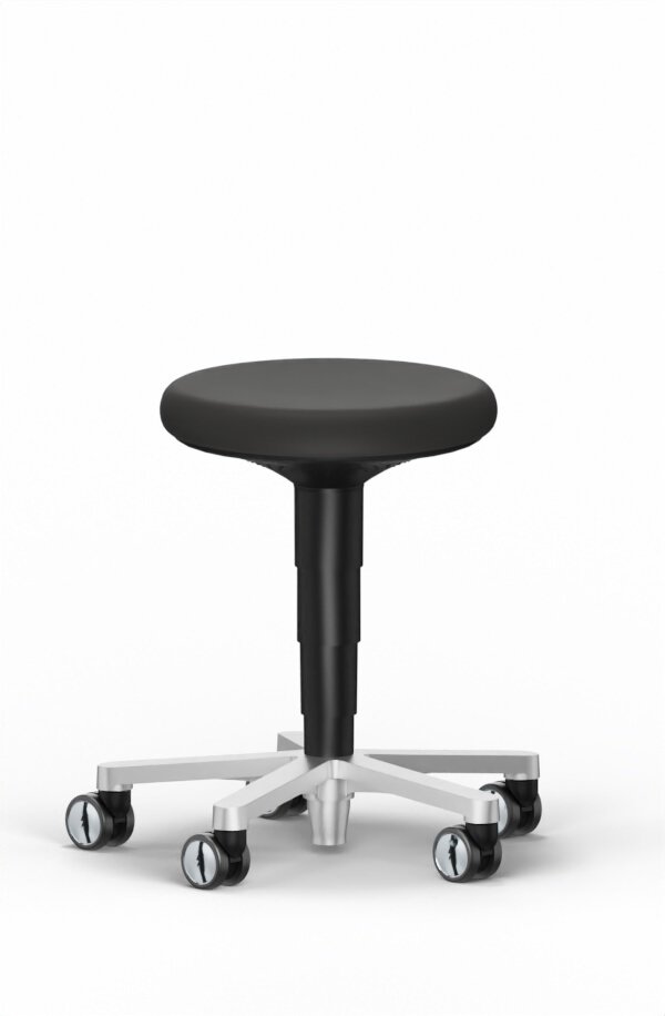 Reinraum Hocker 2 mit Rollen, Kunstleder Magic schwarz