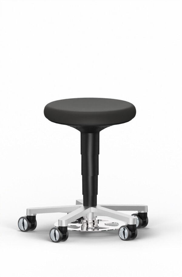 Reinraum Hocker, mit Fußauslösung und Rollen, Kunstleder Magic schwarz