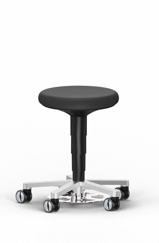 Reinraum Hocker, mit Fußauslösung und Rollen, Integralschaum schwarz