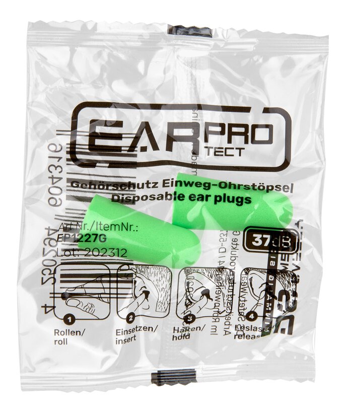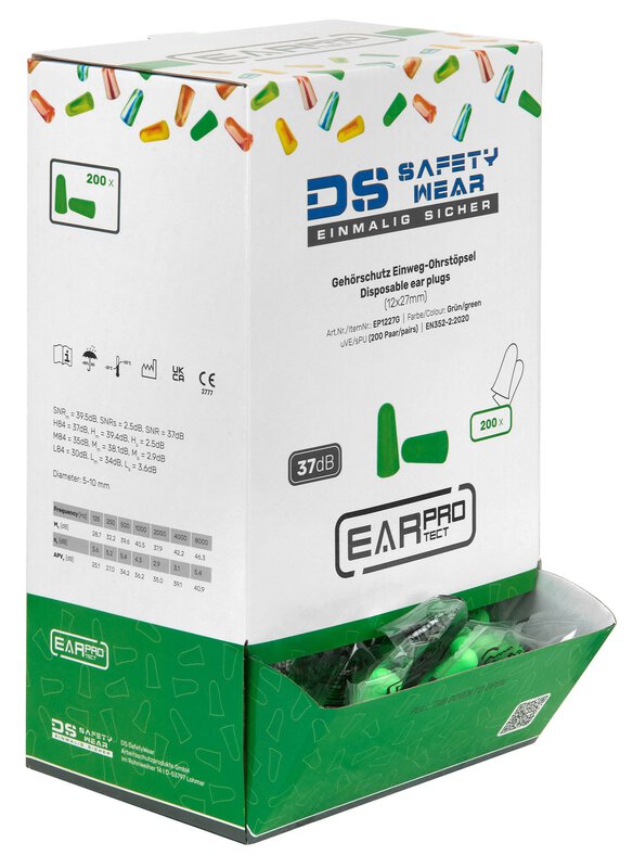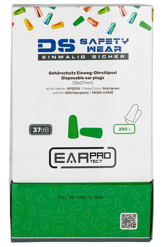 EarProtect Einweg Ohrstöpsel | PU Schaumstoff, grün, SNR-Wert 37 dB, 200 Paar