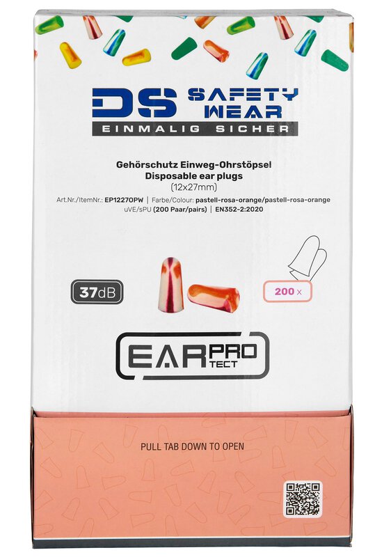 Die DS Safetywear EarProtect Einweg Ohrstöpsel sind aus hochwertigem PU Schaumstoff gefertigt und bieten einen Schalldämmungswert von SNR 37 dB. Die Ohrstöpsel sind in den Farben orange, lila und weiß erhältlich. Mit diesen Ohrstöpseln schützt du deine Ohren effektiv vor Lärm und kannst ungestört arbeiten oder schlafen. Dank ihres Einweg-Designs sind sie hygienisch und einfach zu verwenden. Hol dir jetzt die DS Safetywear EarProtect Einweg Ohrstöpsel für optimalen Gehörschutz!