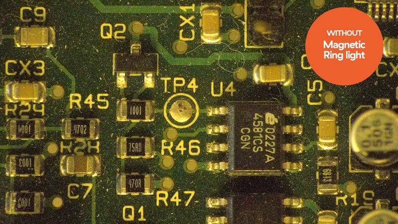 Bei ungenügender oder unzureichender Beleuchtung können kritische Details oder Fehler bei der Inspektionen unbemerkt bleiben, was die Qualität des Produktes stark beeinträchtigt. Um dies zu vermeiden, empfehlen wir das Magnetic Ring Light Kit.