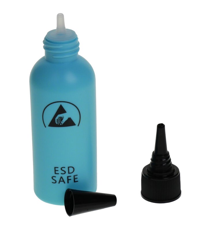 Blaue dissapative Flasche, die im EPA-Bereich verwendet werden kann. Gegossenes antistatisches Polyethelen. Gute Beständigkeit gegen Alkohol, Lösungsmittel und andere Chemikalien.