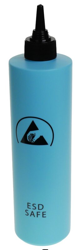 Blaue dissapative Flasche, die im EPA-Bereich verwendet werden kann. Gegossenes antistatisches Polyethelen. Gute Beständigkeit gegen Alkohol, Lösungsmittel und andere Chemikalien.