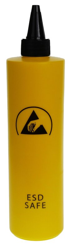 Gelbe dissapative Flasche, die im EPA-Bereich verwendet werden kann. Gegossenes antistatisches Polyethelen. Gute Beständigkeit gegen Alkohol, Lösungsmittel und andere Chemikalien.
