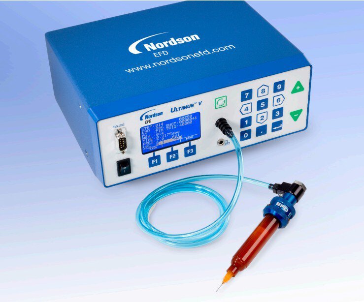 Das Präzisionsdosiergerät Ultimus™ V lässt sich einfach programmieren und verfügt über eine voll elektronische Druckregulation, die kritische Dosierprozesse von Anfang bis Ende konstant hält.
