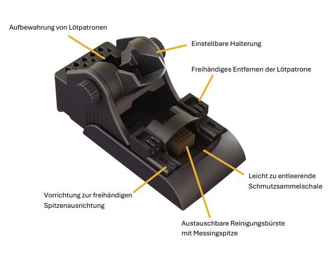 • Ermöglicht freihändiges Arbeiten durch automatische Spitzenentnahme und -ausrichtung.