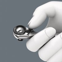 Die Wera Zyklop Mini 3 Ratsche für ¼"-Nüsse. Einfachste Bedienung auch mit nur einer Hand bei beengten Schraubanwendungen. Gesenkgeschmiedete Vollstahlausführung. Feinzahnmechanik mit 60 Zähnen ermöglicht einen kleinen Rückholwinkel von 6° für präzises Arbeiten. Das Rändelrad erlaubt schnelles Schrauben in beengten Situationen, wenn kein Platz für das Ratschen ist. Einfache Links/Rechtsumschaltung. Ergonomisch geformter Knarrenkopf und -hebel.