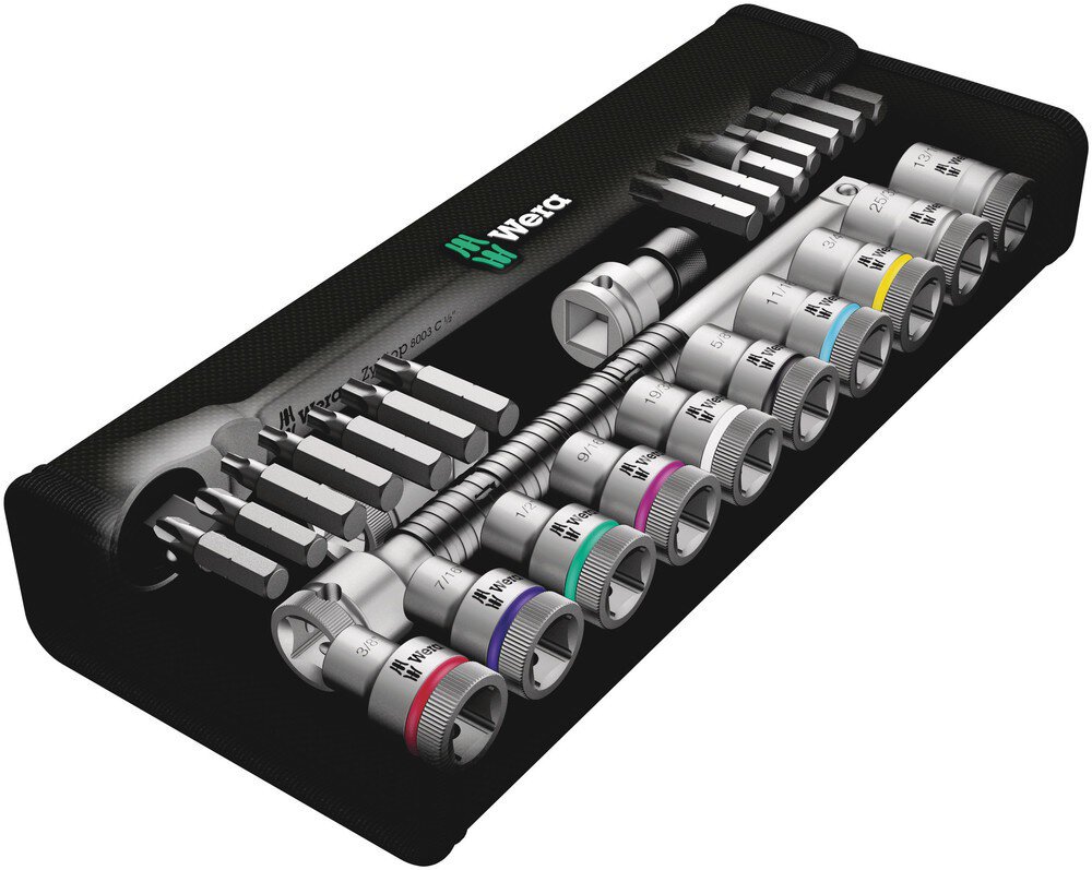Unglaublich kompakte Satzanordnung für viel Werkzeug auf engem Raum. Völlig neues Knarrensatz-Gefühl dank neuartiger textiler Boxen mit sehr hoher Robustheit und Langlebigkeit. Aufrecht positionierbar zur übersichtlichen Lagerung im Werkstattregal. Zusätzlicher Oberflächenschutz durch textiles Außenmaterial. Geringes Gewicht und Volumen für vereinfachte Mobilität.Mit Werkzeugfinder Take it easy: Farbkennzeichnung nach Größen.