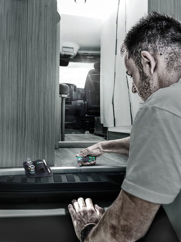• Die magnetische Direktaufnahme macht aus der 3/8"-Knarre gleichzeitig einen Bit-Ratschenschraubendreher mit 1/4"-Bitaufnahme