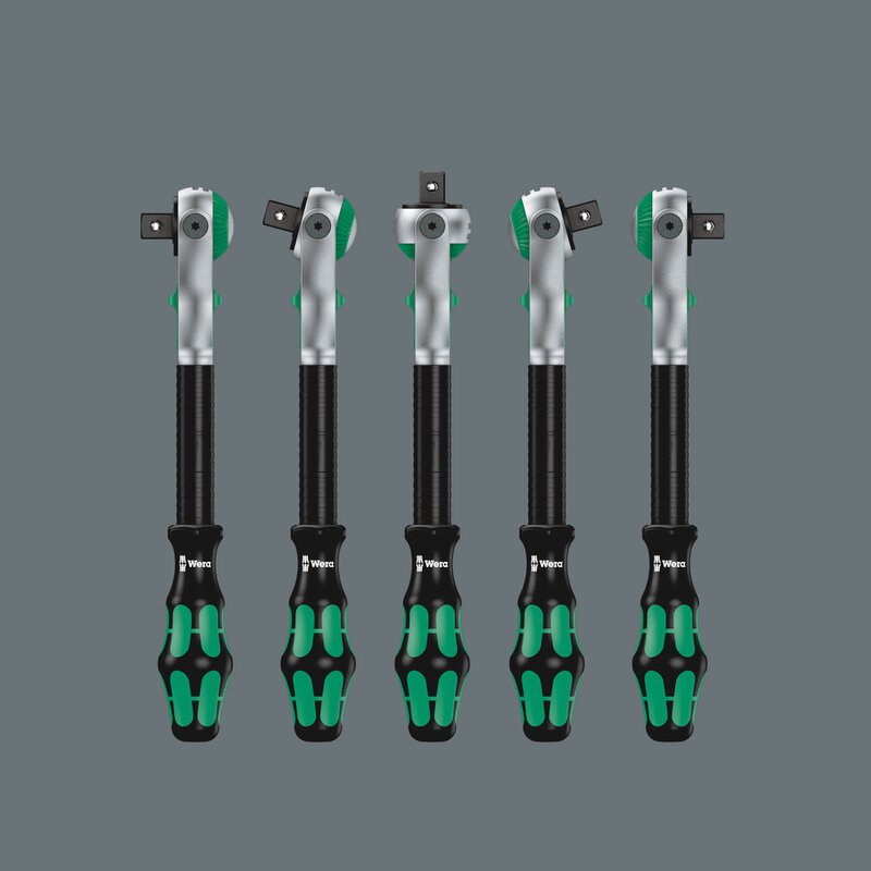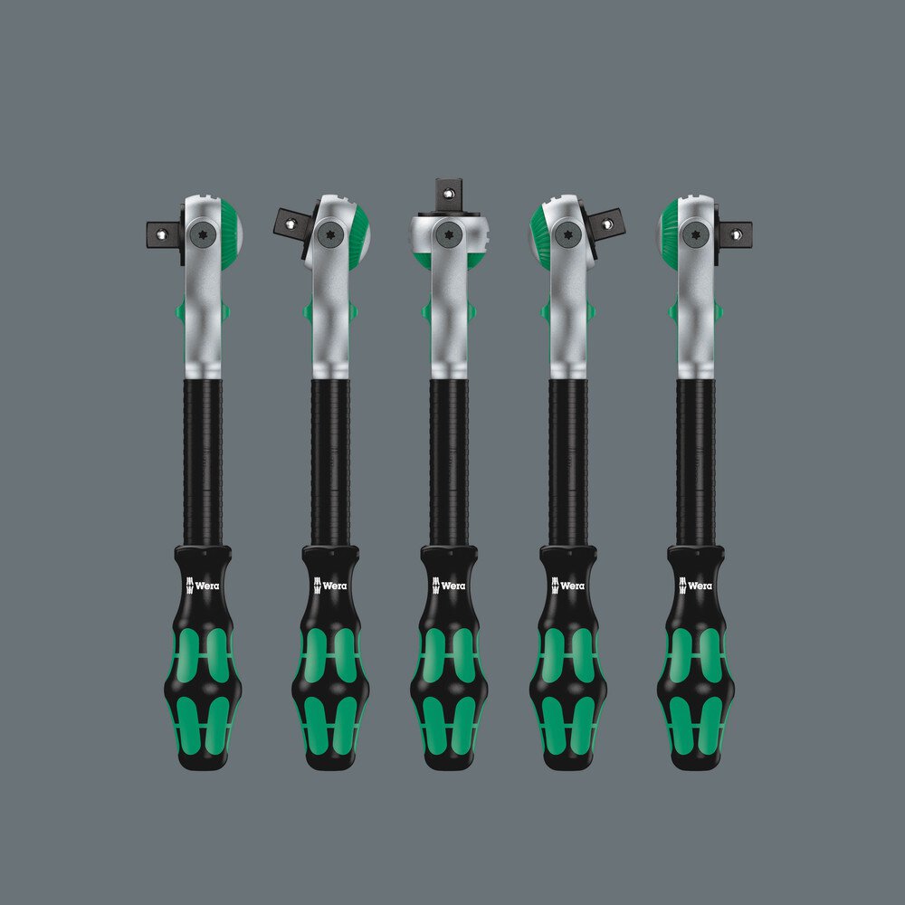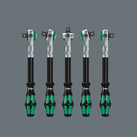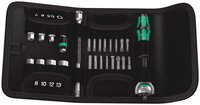 Ratschen und Schrauben im Kraftform Kompakt Format. Inklusive Zyklop-Knarre: Unglaublich hohe Schraubgeschwindigkeit. Vereinigt 5 Knarrentypen in einer Knarre. Schwungmassenkonstruktion und griffige Schnelldrehhülse für hohe Arbeitsgeschwindigkeit. Frei schwenkbarer Knarrenkopf; definierte Stellung bei 0°, 90° nach links und rechts sowie 15° von 90° nach innen; in 0°-Stellung einsetzbar wie ein konventioneller Schraubendreher. Einfache Druckknopfauslösung; Links- /Rechtsumschaltung, feinverzahnt, kleiner Rückholwinkel von 5°. Mehrkomponentiger Kraftform-Griff für ermüdungsarmes Arbeiten. 26-teilig in Falttasche zur Befestigung am Gürtel.1 Zyklop-Knarre mit 1/4"-Antrieb, 7 Zyklop-Nüsse (metrisch), 1 Zyklop-Verlängerung (lang) mit Schnelldrehhülse, 1 Verbindungsteil, 16 Bits in 50 mm Länge.