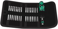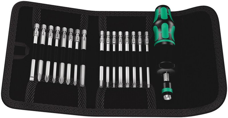 Falttasche mit 89 mm langen Bits. Inklusive Drehmomentschraubendreher 7441 mit Schnellwechselfutter "Rapidaptor" und mehrkomponentigem Kraftform-Griff für ermüdungsarmes Arbeiten. Für hand- und maschinenbetätigte Verschraubungen geeignet. 17-teilig. Kompaktes Griff-/Wechselklingen-System für drehmomentkontrollierte Verschraubungen. Inklusive Drehmoment-Handhalter 7441, einstellbar von 1,2 bis 3,0 Nm. Einstellbar in Schritten à 0,10 Nm. Einfache Einstellung des benötigten Drehmomentwertes ohne Sonderwerkzeug. Gute Ablesbarkeit des Skalenwerts. Rapidaptor-Schnellwechseltechnologie für blitzschnellen Bit-Wechsel. Unbegrenztes Lösemoment zum Lösen festsitzender Schrauben. Mehrkomponentiger Kraftform-Griff mit Hart- und Weichzonen für hohe Arbeitsgeschwindigkeiten und zur Schonung der Handfläche. Inklusive 16 Bits mit 89 mm Länge. Mit praktischer Falttasche zur übersichtlichen Verstauung.